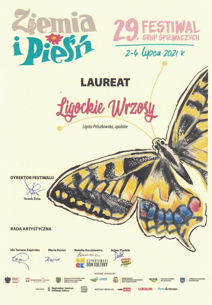 LIGOCKIE WRZOSY Zespół Ligockie Wrzosy z Ligoty Prószkowskiej LAUREATEM 29. Festiwalu Grup Śpiewaczych „Ziemia i Pieśń” w Szprotawie. Przesłuchania konkursowe trwały od 2 do 4 lipca 2021 roku w Domu Kultury w Szprotawie. Do konkursu stanęło około 40 podmiotów artystycznych z Polski. Konkurs poprzedziły kwalifikacje dokonane przez Jury Konkursu na podstawie nagrań. SERDECZNIE GRATULUJEMY Ligockie […]